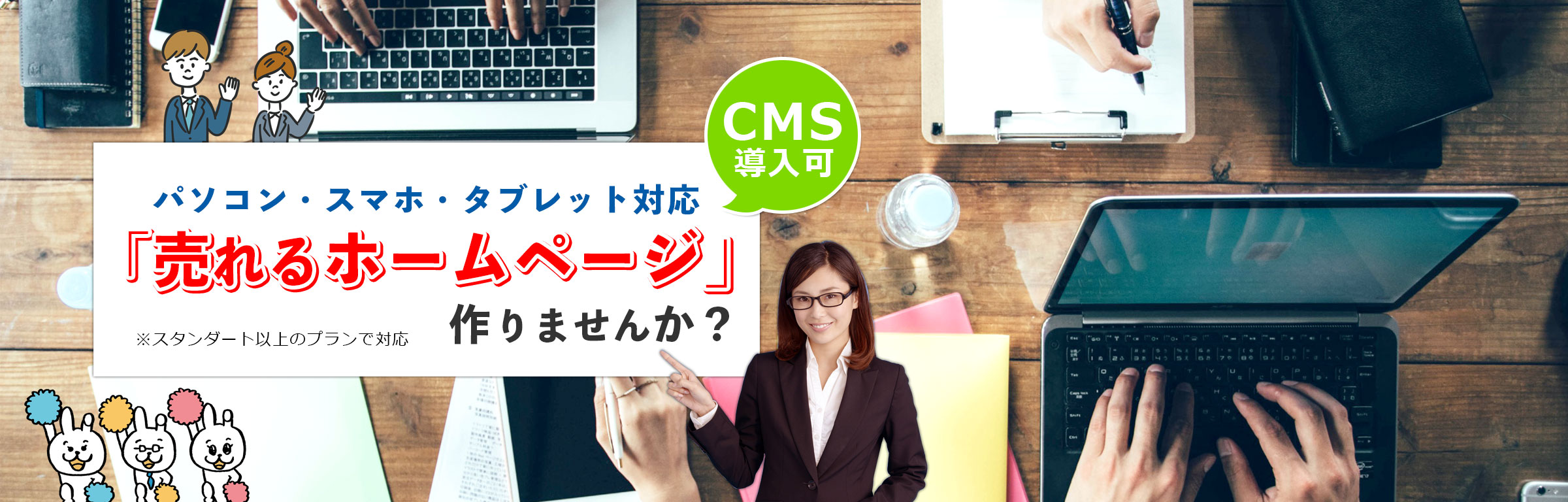 パソコンでも、タブレットでも、スマートフォンでも。ストレスフリーなホームページを作成。